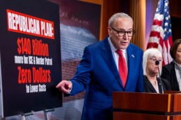 Senate Minority Leader Chuck Schumer holds a press conference at the Capitol