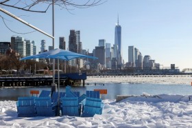 EUA: Gelo acumula-se no rio Hudson durante uma onda de frio em Nova Iorque